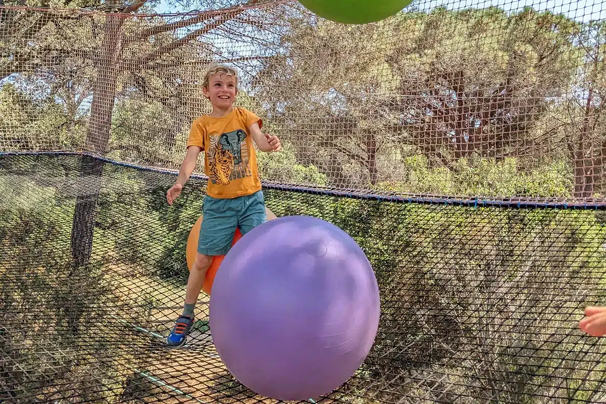For the Baby course: a 12 m² net 1 m above the ground for toddlers to jump and play with balls and balloons.
